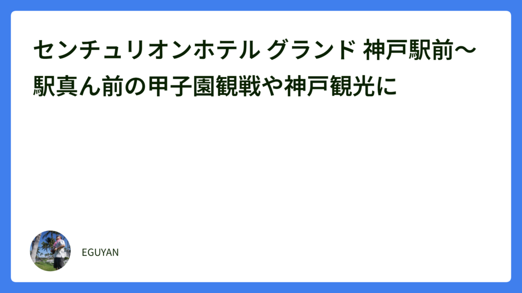 今年の夏の甲子園、翌日の赤穂という兵庫ツアーの宿泊は、「センチュリオンホテル」を利用したのでご紹介。 正しくは「センチュリオンホテル グランド 神戸駅前」。その名の通り、JR神戸駅と高速神戸駅の真ん前にあって、どこにいく … 続きを読む センチュリオンホテル グランド 神戸駅前〜駅真ん前の甲子園観戦や神戸観光に