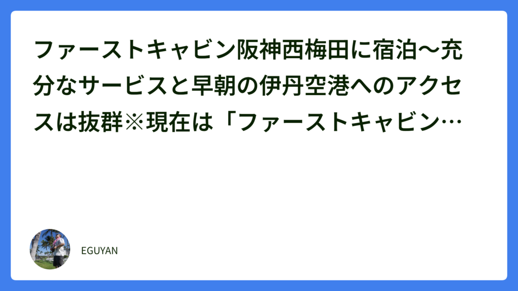 ファーストキャビン阪神西梅田に宿泊~充分なサービスと早朝の伊丹空港へのアクセスは抜群※現在は「ファーストキャビン西梅田」