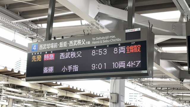 今回は所沢駅から出発しました。飯能で乗り換えて普通列車でも行けますが、時間がかかるので、特急ラビューちちぶ号に乗っていきました。