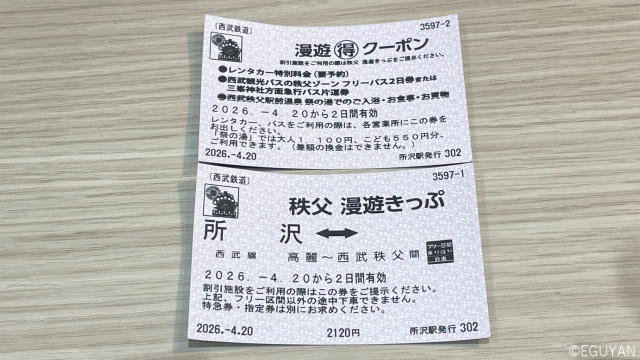 もう1つが、今回私が使った「秩父漫遊きっぷ」。